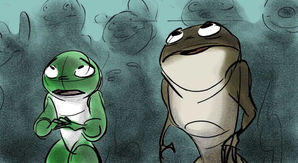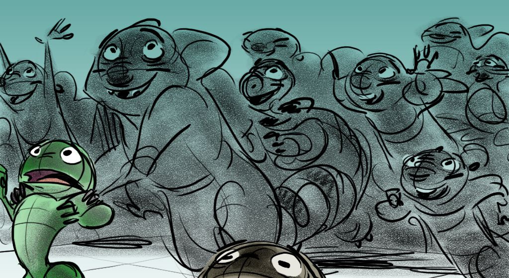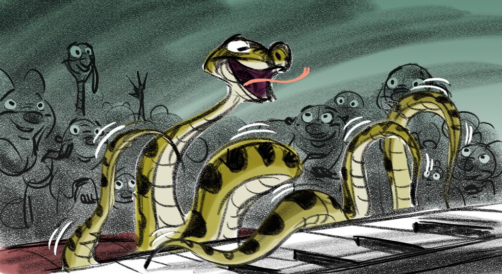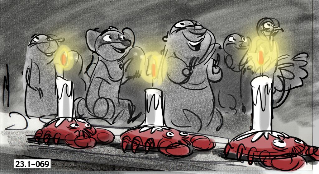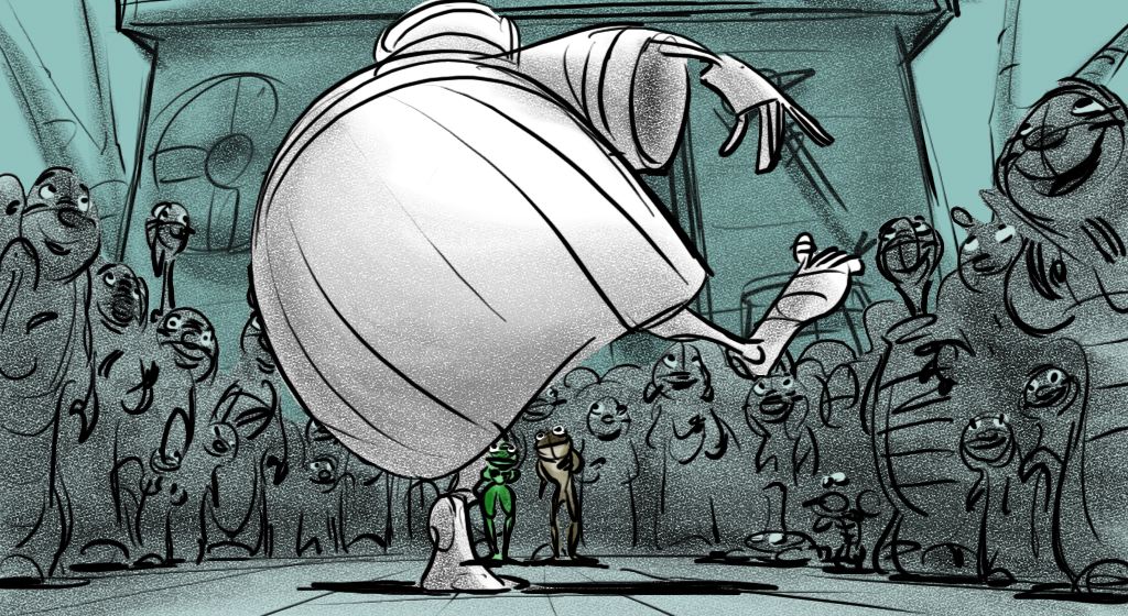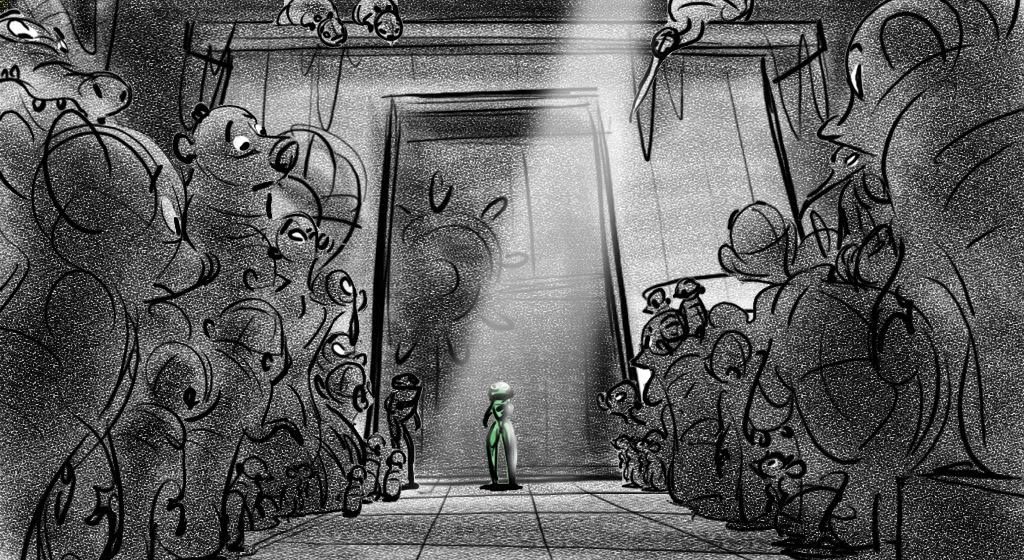 These sketches are from an early version of Mama Odie's song from Princess and the Frog. The song was originally a little gospel diddy called, Turn On The Light. Paul Briggs and I teamed up on the sequence depicting a "church service" in the black southern tradition with a choir of spoonbills in the background and various swamp critters acting as the congregation. The song was eventually rewritten as You Gotta Dig A little Deeper which ended up in the movie. Working with Paul was the highlight of my time on that movie.